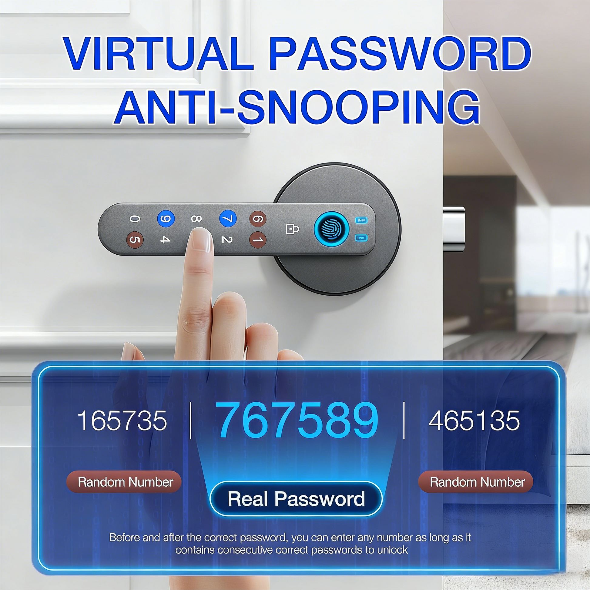 - Flexible Unlocking Methods: Access via fingerprint (1s quick recognition), keypad (anti-snooping virtual password), physical keys, or Bluetooth app.