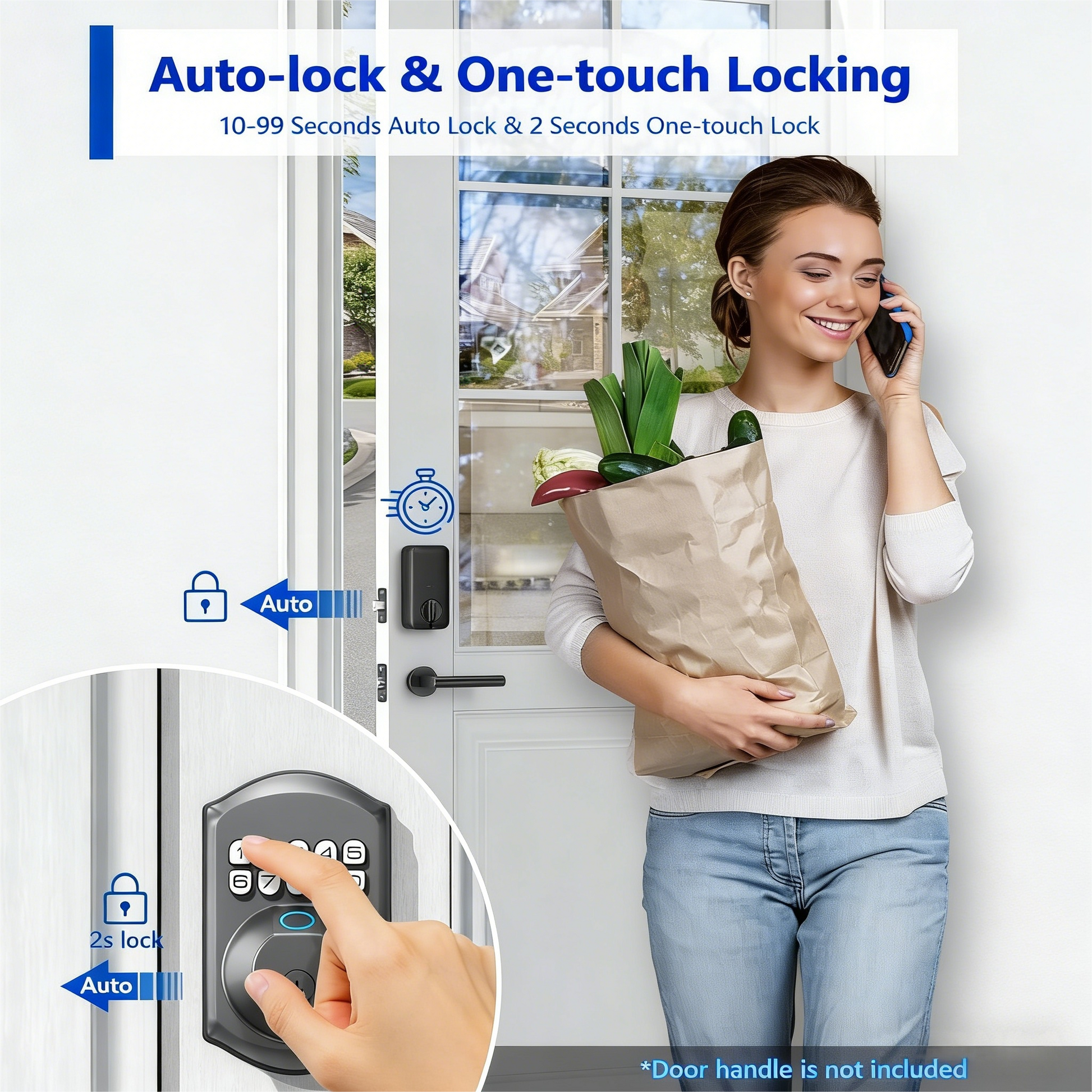 - Convenient Locking: 10-99s auto-lock & 2-second one-touch locking