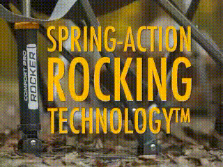 Patented spring-action absorbers ensure gentle rocking anywhere. 350-lb steel frame, breathable mesh, and a built-in cup holder deliver lasting comfort.